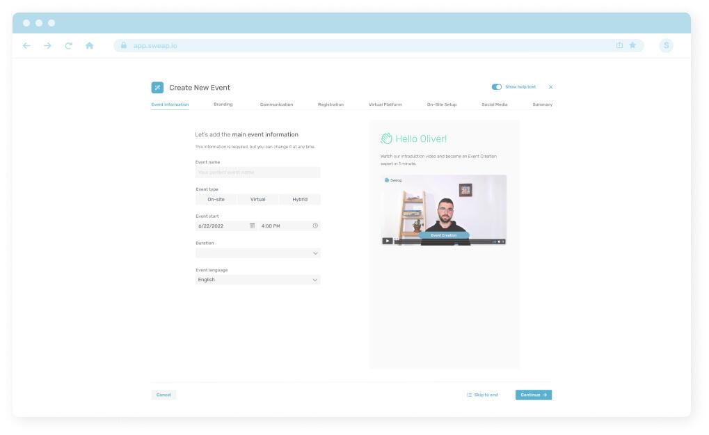 Sweap's "Event-Creation-Process" beschleunigt die Erstellung deiner Veranstaltung.