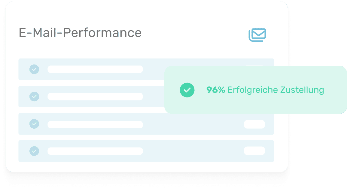 Das E-Mail-Performance Widget gibt dir den vollen Überblick über die wichtigsten Metriken: Zustellungen, Bounces, Abmeldungen und mehr. Optimiere jede Kampagne für maximalen Erfolg.