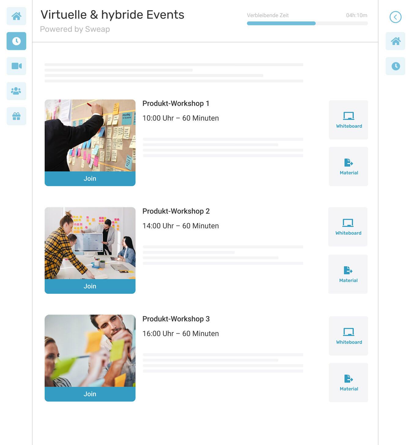 Die Virtual Event Platform von Sweap bietet dir maximale Freiheit: Du kannst verschiedenste Drittanbieter-Tools für Streaming, Chat, Umfragen, Videokonferenzen u. v. m. nahtlos integrieren.