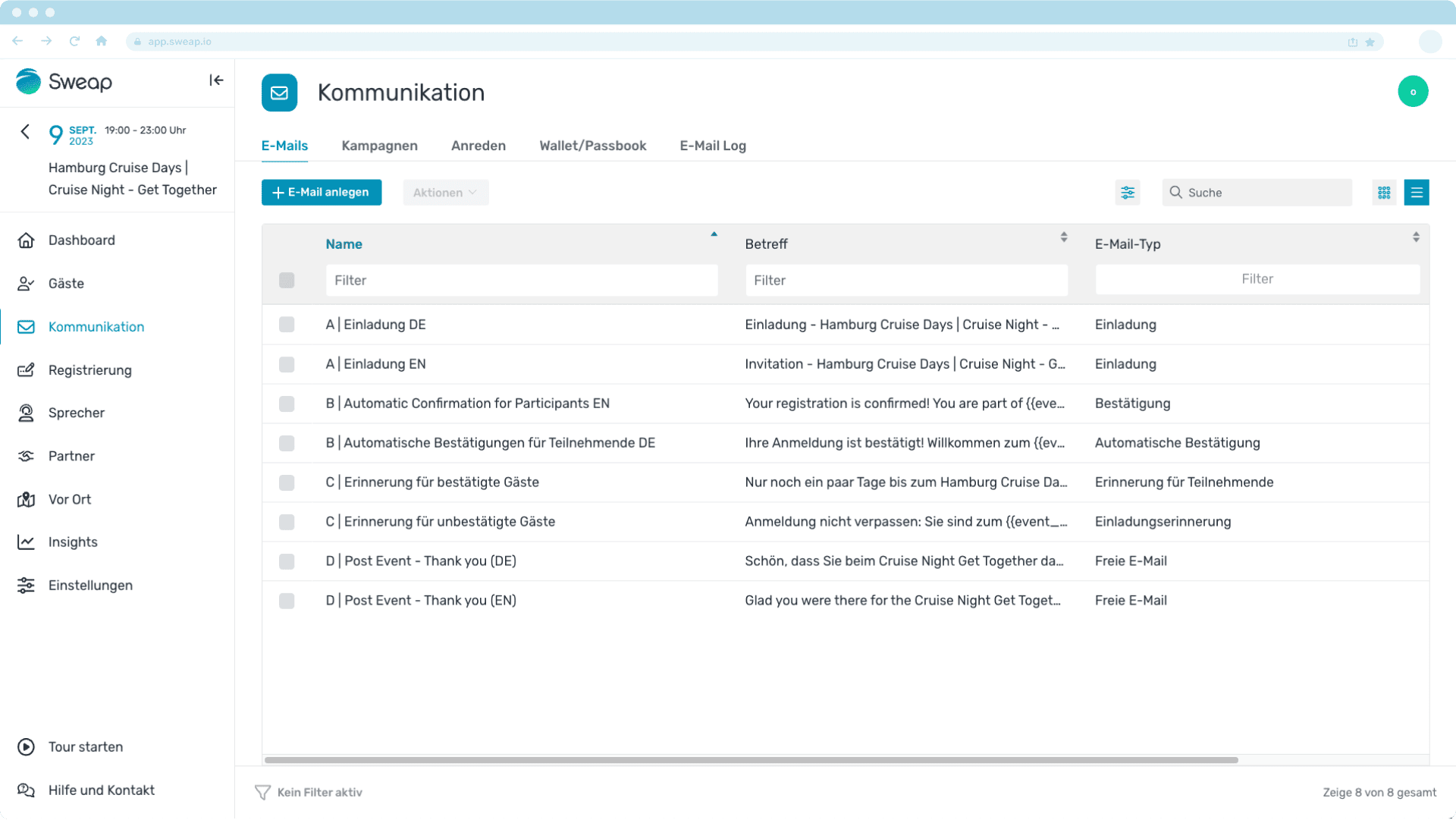 Um diese Herausforderungen zu lösen, nutzt Hamburg Tourismus Sweap. Das Tool deckt dabei alle Bedürfnisse des Gäste- und Event-Managements ab und wird somit zu einem wichtigen Teil der nachhaltigeren Event-Planung. Der Einsatz der Event-Management-Software führt somit zu einer erheblichen Reduzierung von Papieraufwand, Kosten und dem ökologischen Fußabdruck.