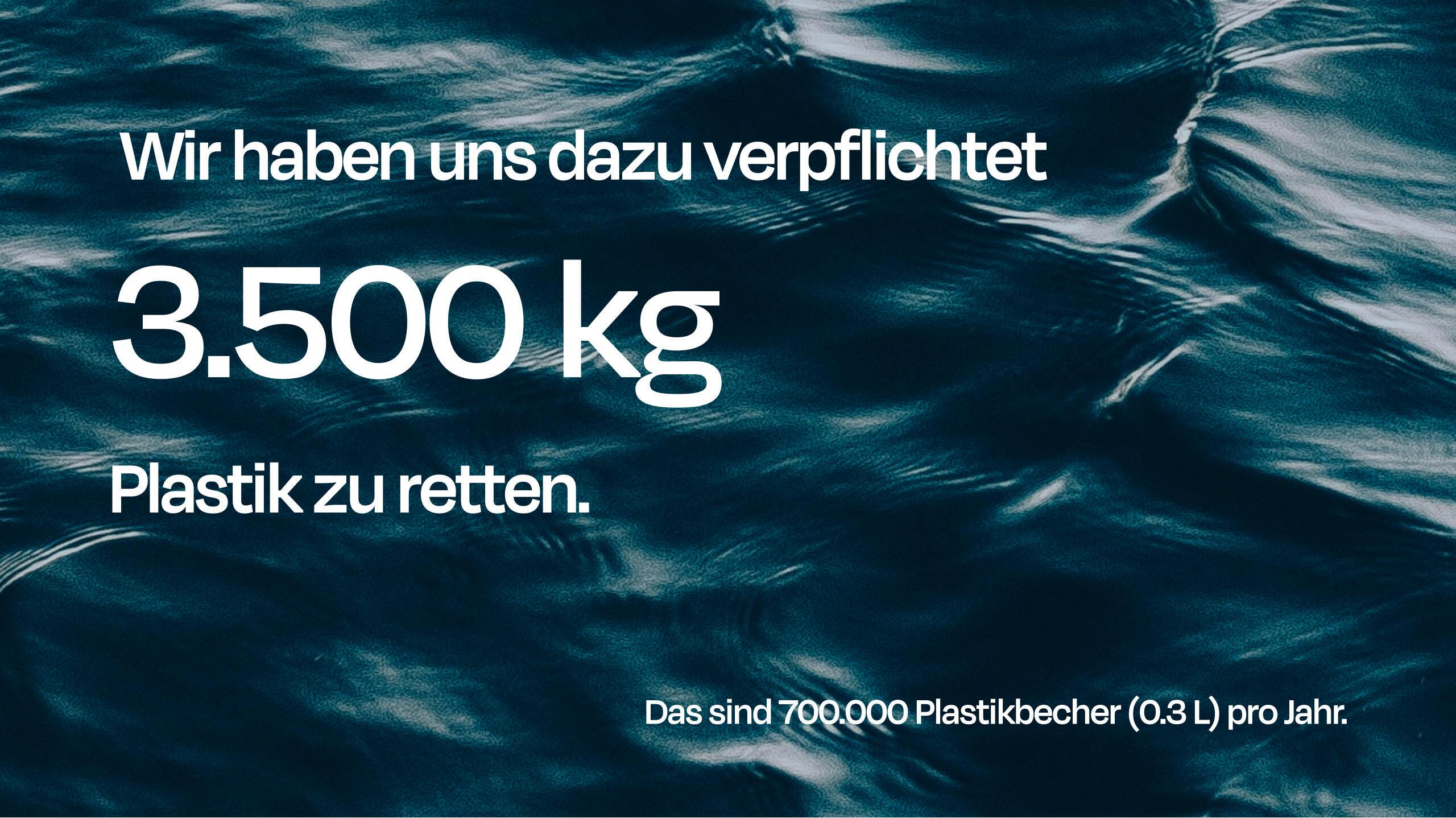 Wir haben uns verpflichtet, jährlich mindestens 3.500 kg Plastik in unseren Ozeanen zu vermeiden. Deine Events machen den Unterschied.
