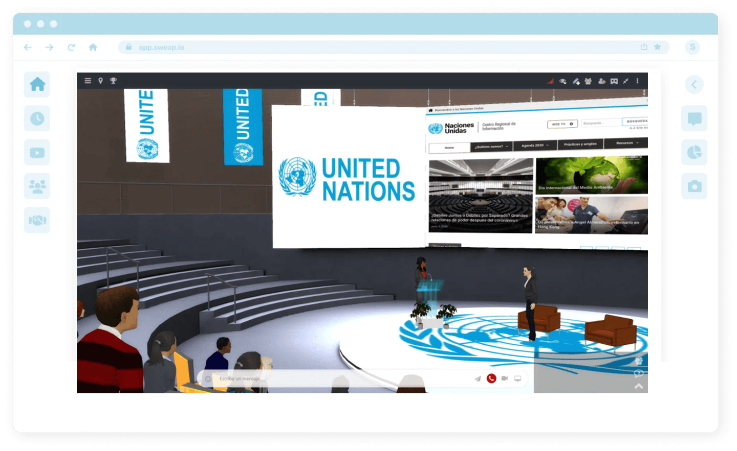 The combination of a 3D environment and easy integration with Sweap makes it possible to design virtual events that are both interactive and engaging.