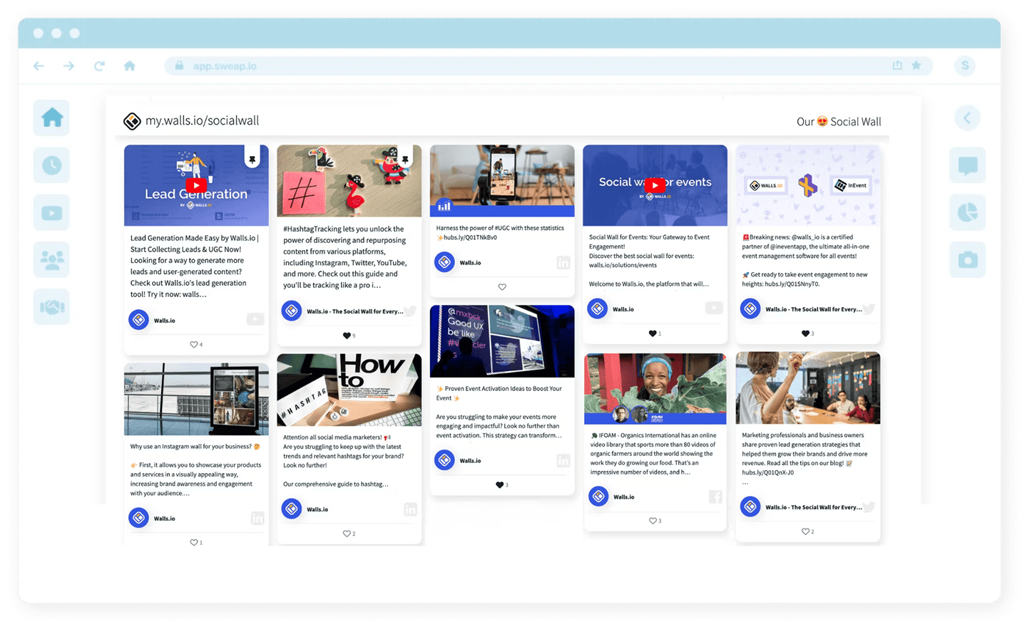 Walls.io seamlessly integrates into the Sweap Virtual Event Platform. You can easily create your social wall and integrate the link into your event platform.