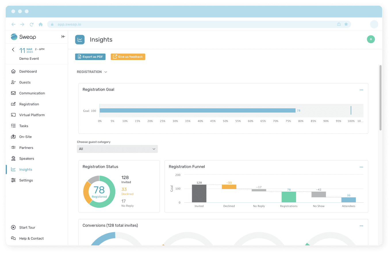 The Sweap Insightsts Feature provides you with real-time event data.