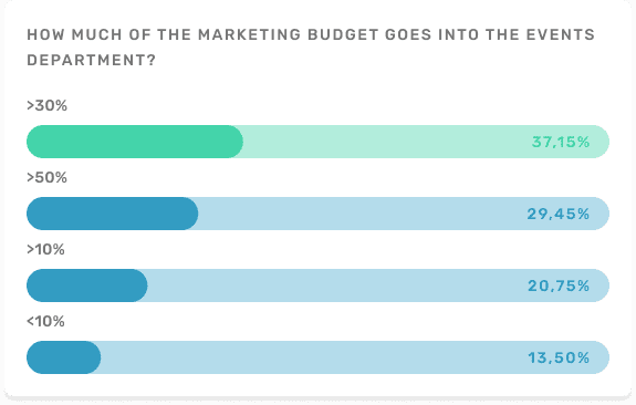 At 37.5% of the surveyed companies, more than 30% of the total marketing budget flows into the event department.(Sweap, 2022)
