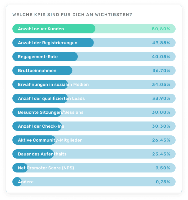 For 40% of event managers, the engagement rate is one of the most important KPIS. (Sweap, 2022)