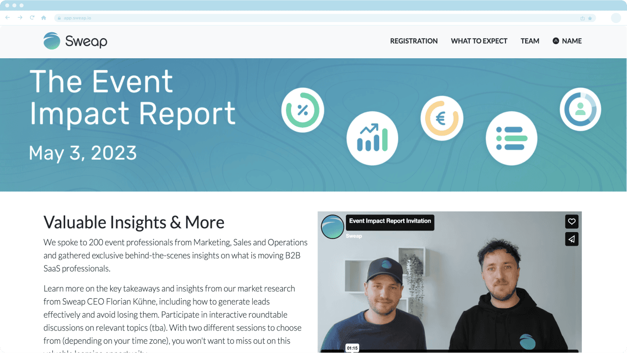 From building SEO-friendly registration pages to analyzing performance data, Sweap gives you the tools to manage your event’s digital presence efficiently. Ready to explore how Sweap can make your event marketing easier? Book a demo with one of our experts and see for yourself how we can help elevate your next event.
